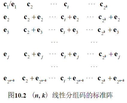 定义 10.14 把 个可能的接收矢量划分成 个不相交的子集,使每个子集只含有一个码矢,这个阵列称为标准阵