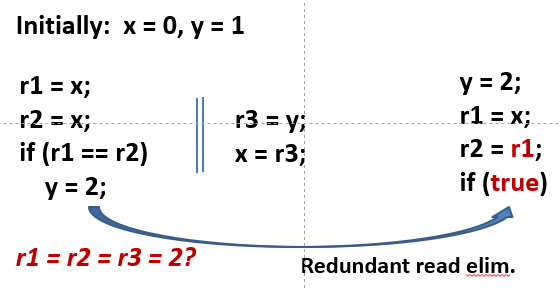 DRF 程序就不用担心受 reordering 优化影响。 因此编译器也可以大肆优化: