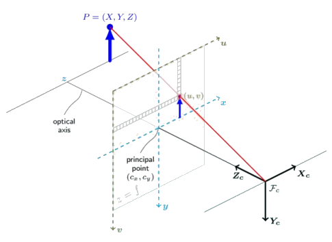 像素纵横系数:,将虚拟成像平面映射到物理成像平面(像素坐标系)