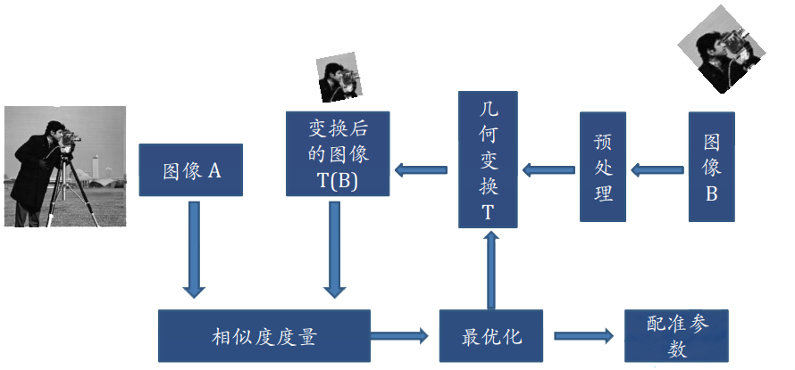 - 图像配准可以视为源图像 I2 和目标图像 I1 关于空间和灰度的映射关系: 其中: f 为二维空间坐标变换(如仿射变换),g 为灰度变换。