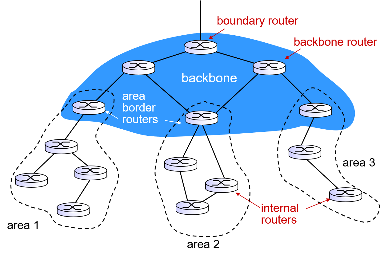 - Support or hierarchy within a single AS. An OSPF autonomous system can be configured hierarchically into areas.