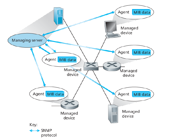 The most common usage of SNMP is in a request-response mode in which an SNMP managing server sends a request to an SNMP agent, who receives the request, performs some action, and sends a reply to the request. Typically, a request will be used to query (retrieve) or modify (set) MIB object values associated with a managed device. A second common usage of SNMP is for an agent to send an unsolicited message, known as a trap message, to a managing server. Trap messages are used to notify a managing server of an exceptional situation (e.g., a link interface going up or down) that has resulted in changes to MIB object values.