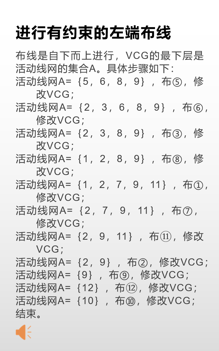 - 布线仍按水平布线线道顺序进行,布线集始终由活动线网组成